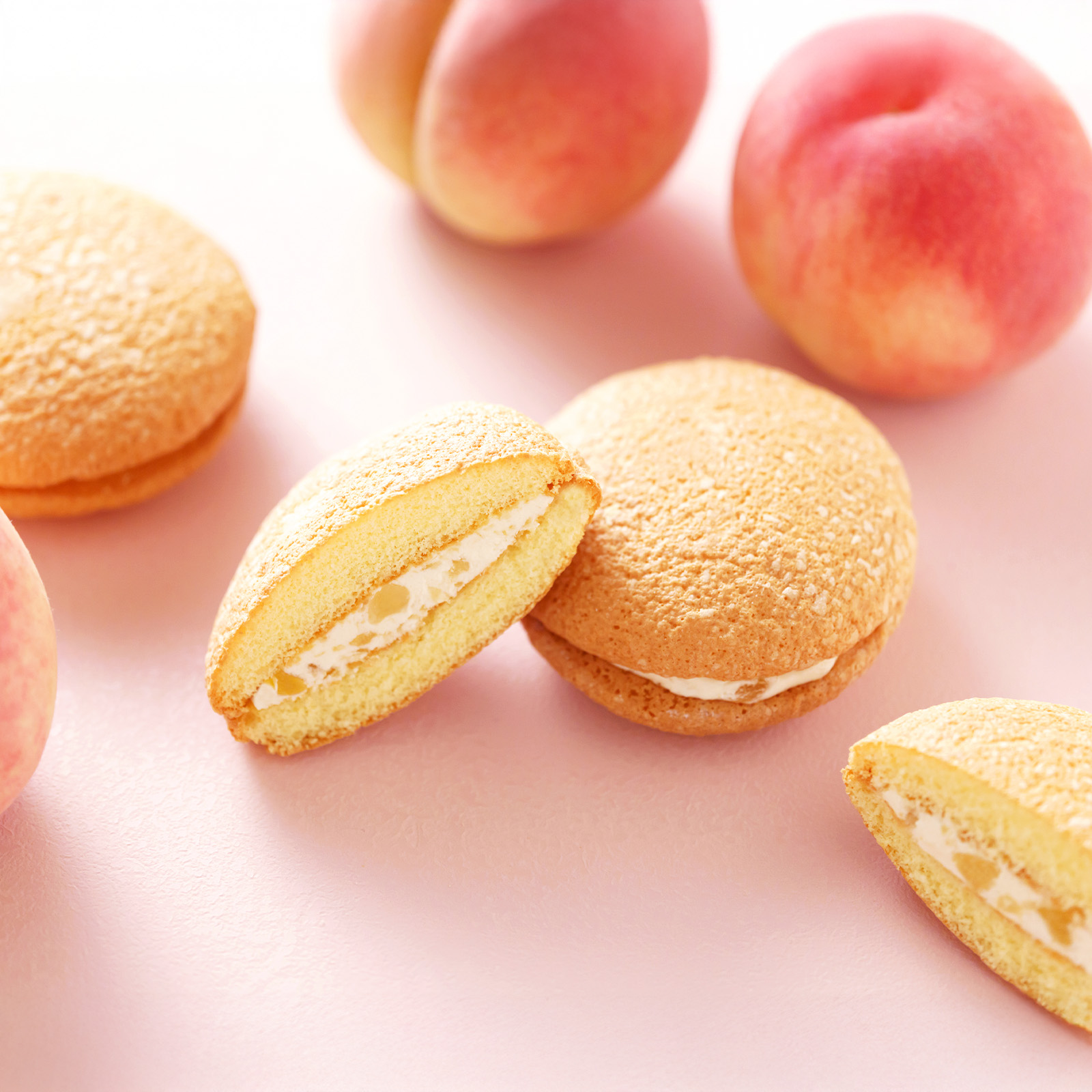 白桃ブッセは洋酒を使用していますので、お子様やお酒に弱い方、運転時等はご注意ください。